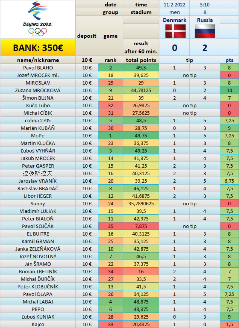 - DENMARK : RUSSIA 0 : 2 ( 0 : 0, 0 : 1, 0 : 1 )