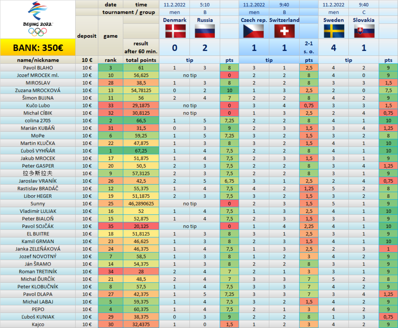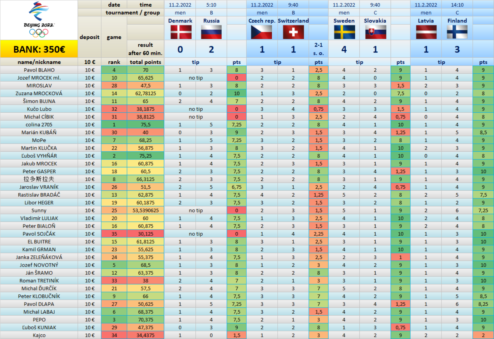 - SWEDEN : SLOVAKIA 4 : 1 ( 3 : 0, 0 : 0, 1 : 1 )