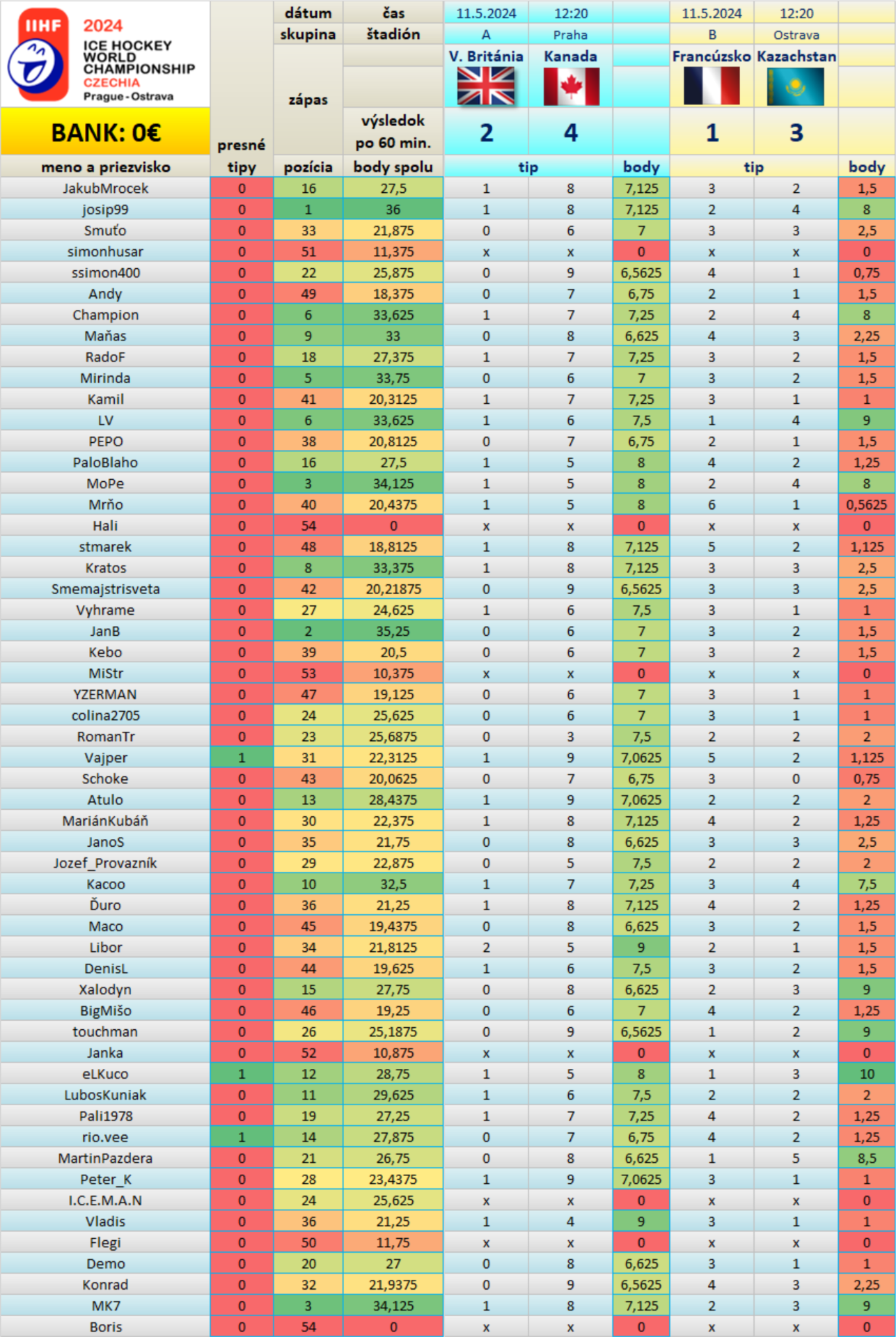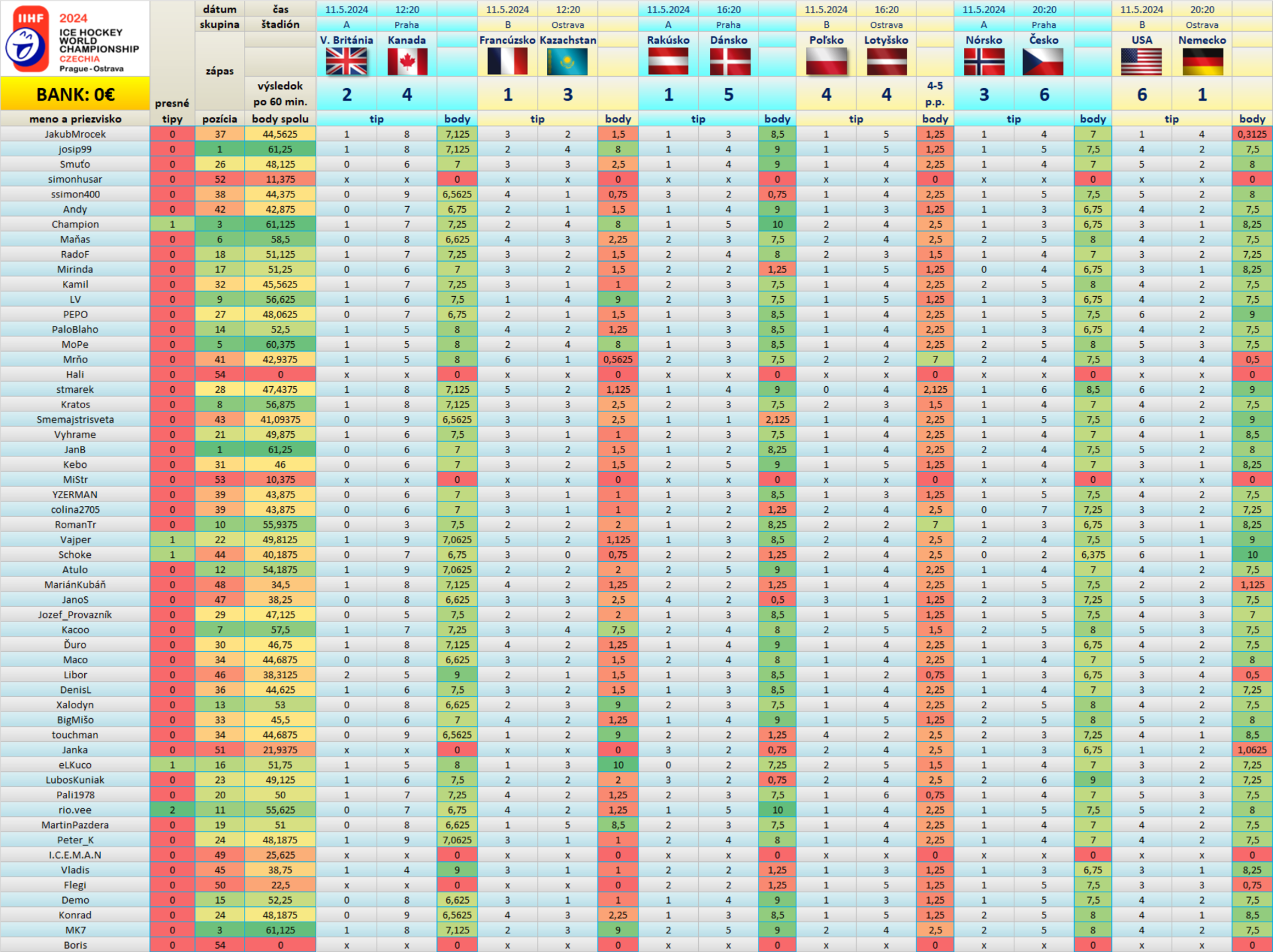 Tabuľka Tipovačky po 8/64 zápasoch: