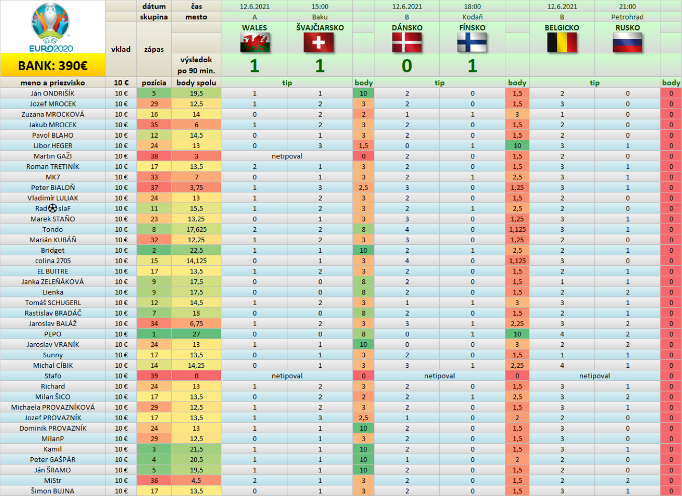 TCP Tipovačka EURO 2020 po 4/51 zápasoch