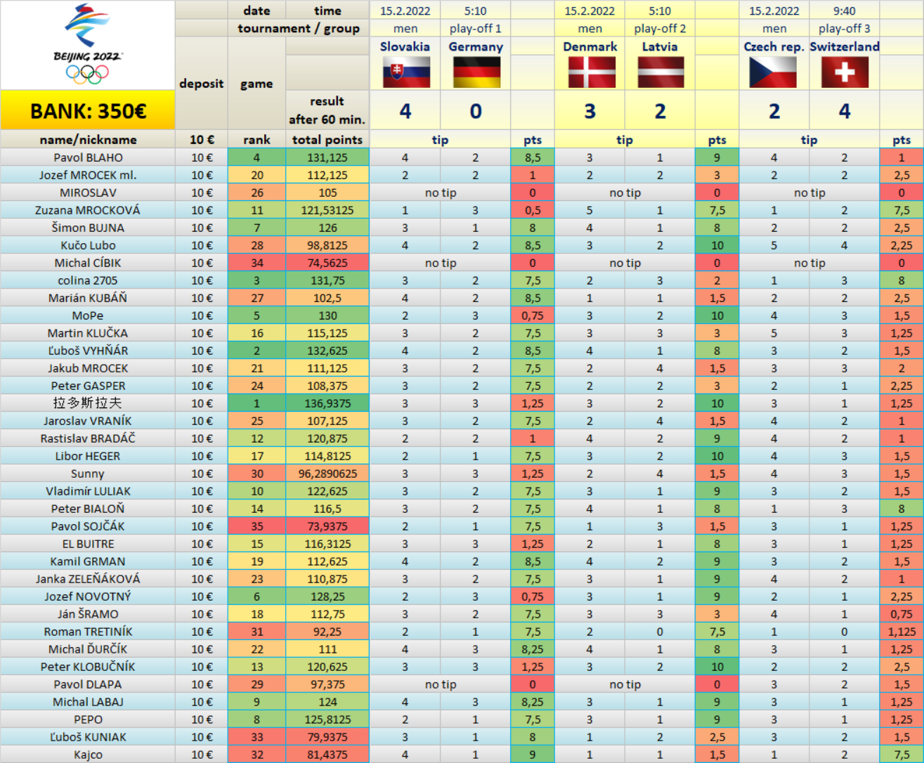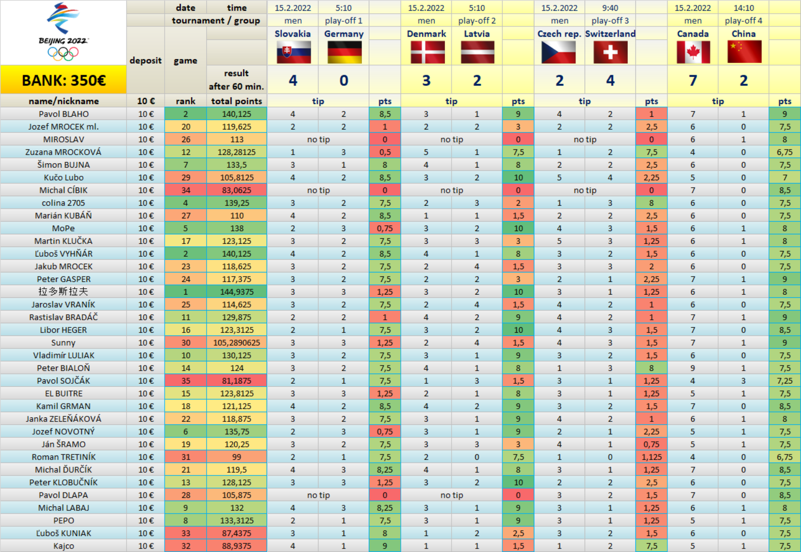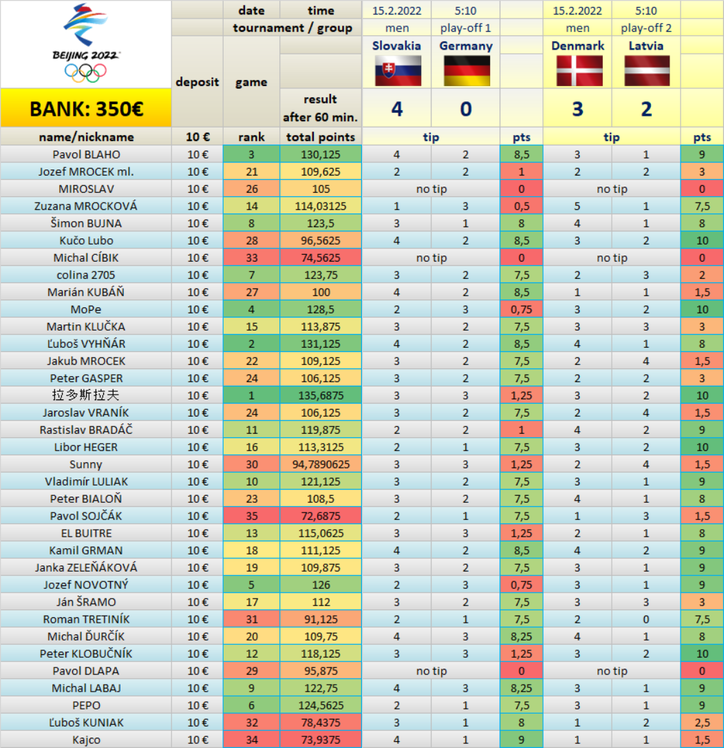 - SLOVAKIA : GERMANY 4 : 0 ( 1 : 0, 2 : 0, 1 : 0 )