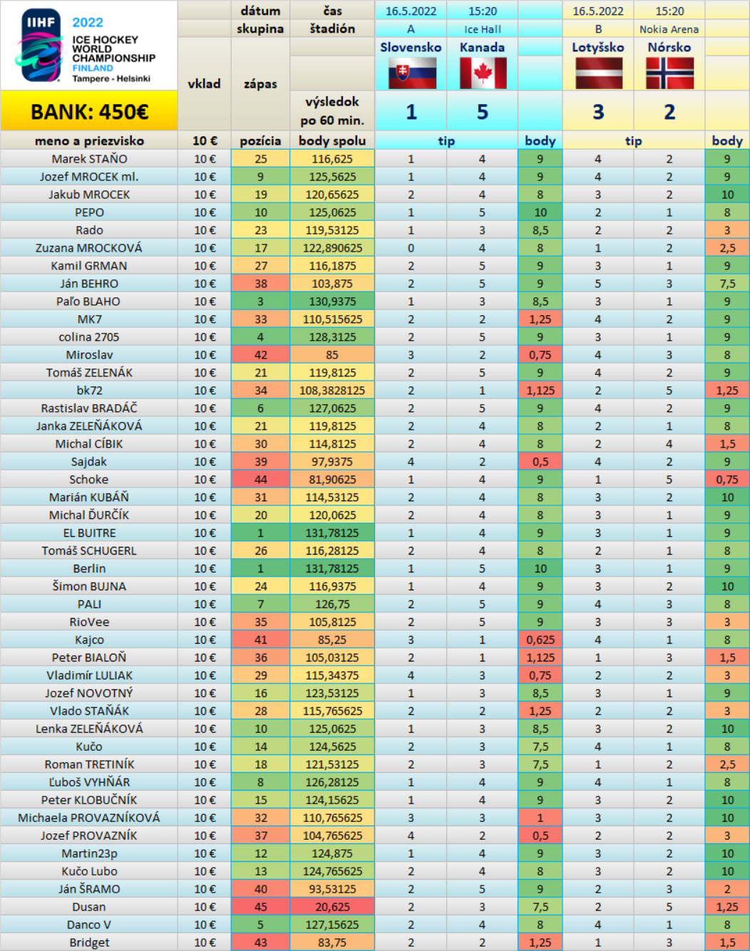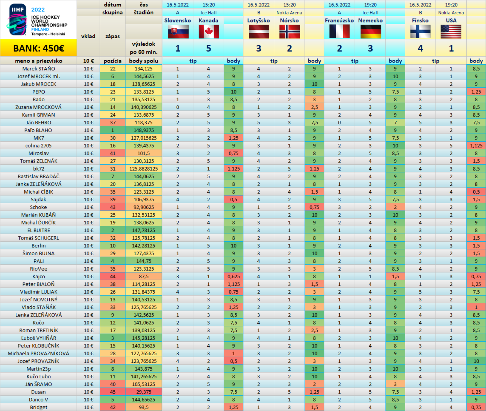 Tabuľka Tipovačky po 18/64 zápasoch: