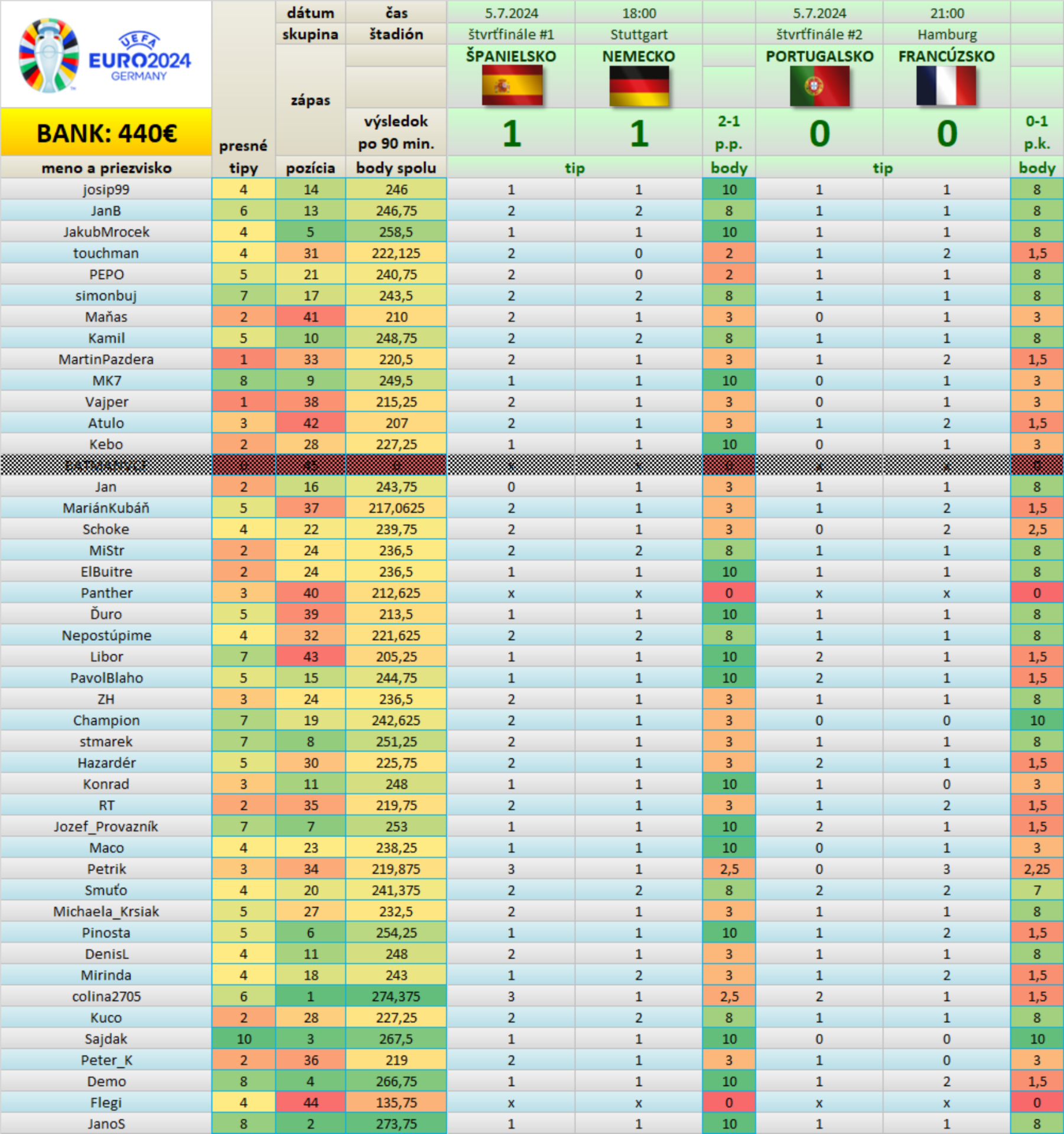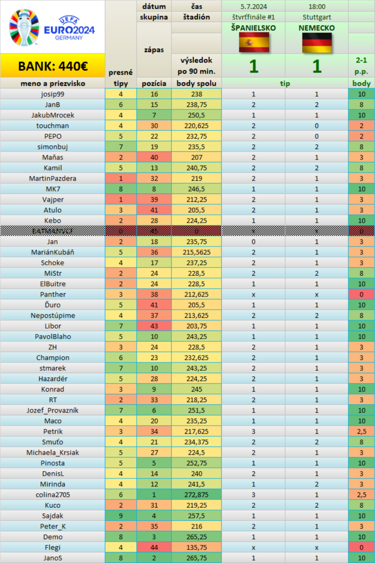 Tabuľka Tipovačky po 45/51 zápasoch: