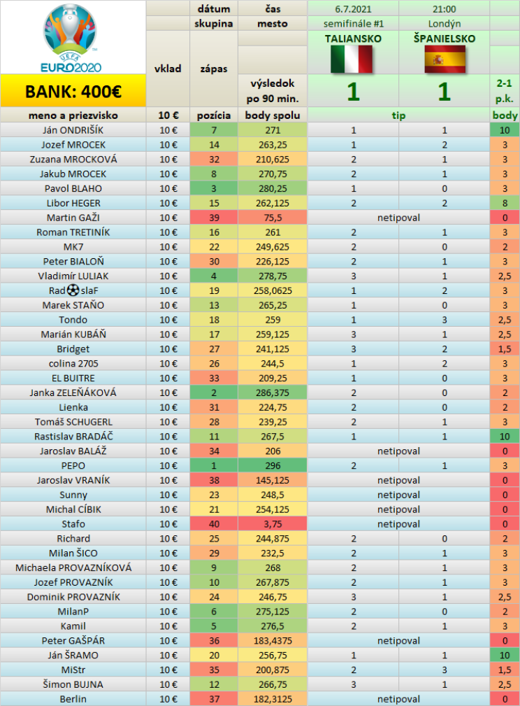 TCP Tipovačka EURO 2020 po 49/51 zápasoch