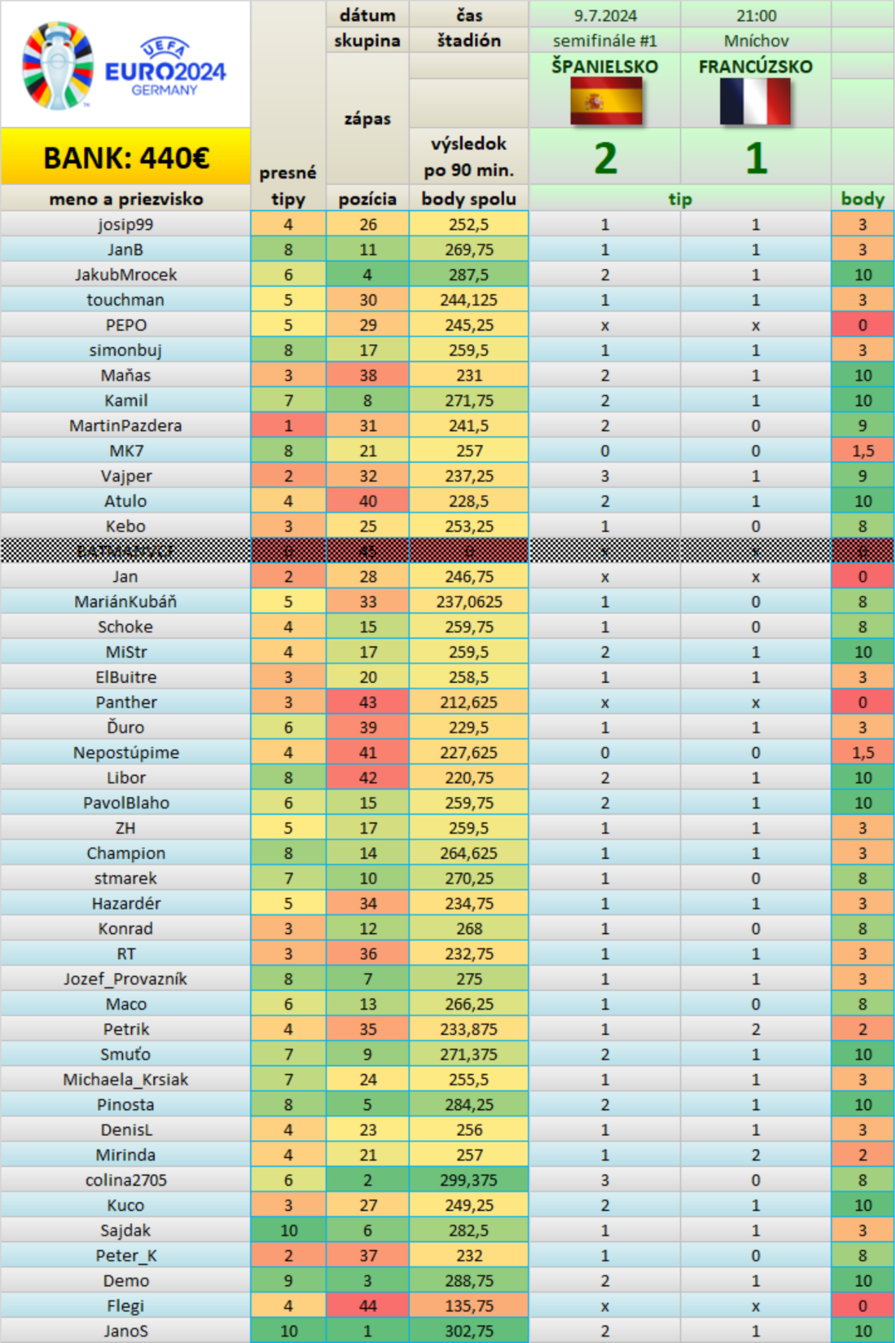 Tabuľka Tipovačky po 49/51 zápasoch: