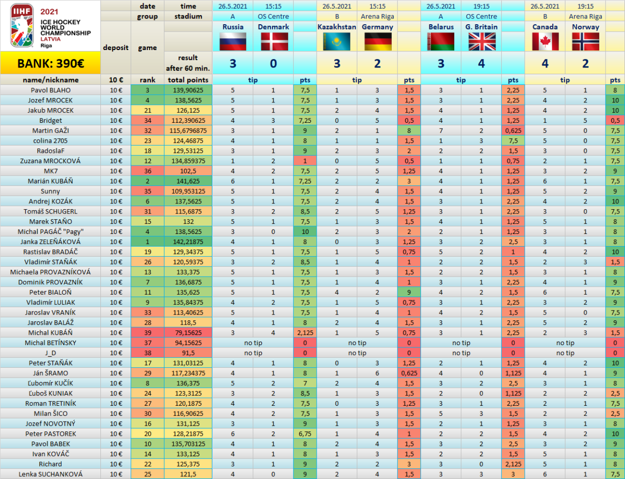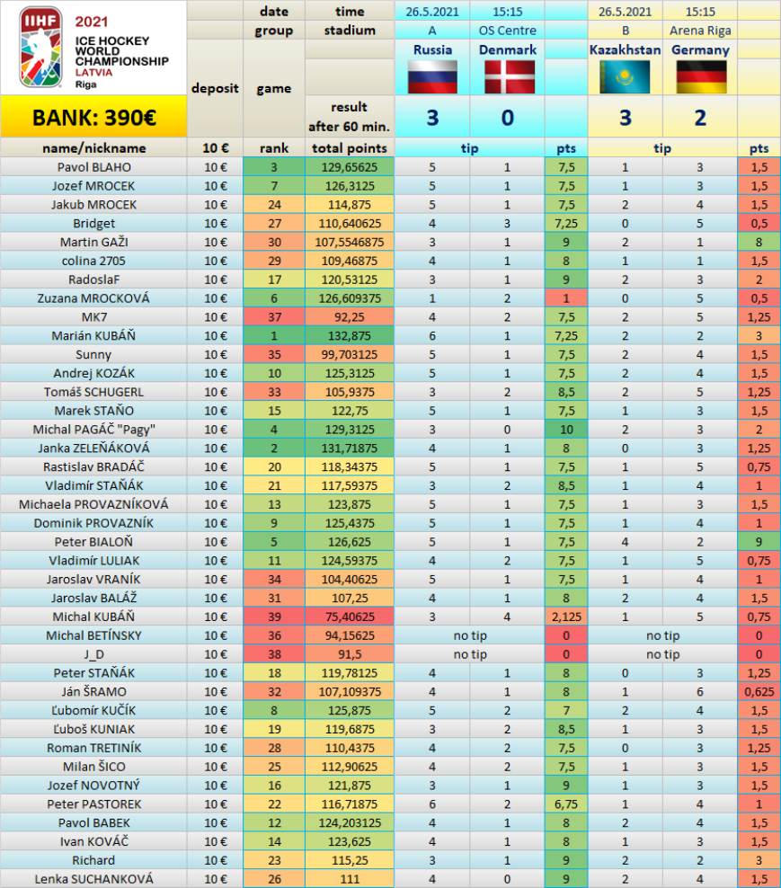 Ranking after 28/64 games