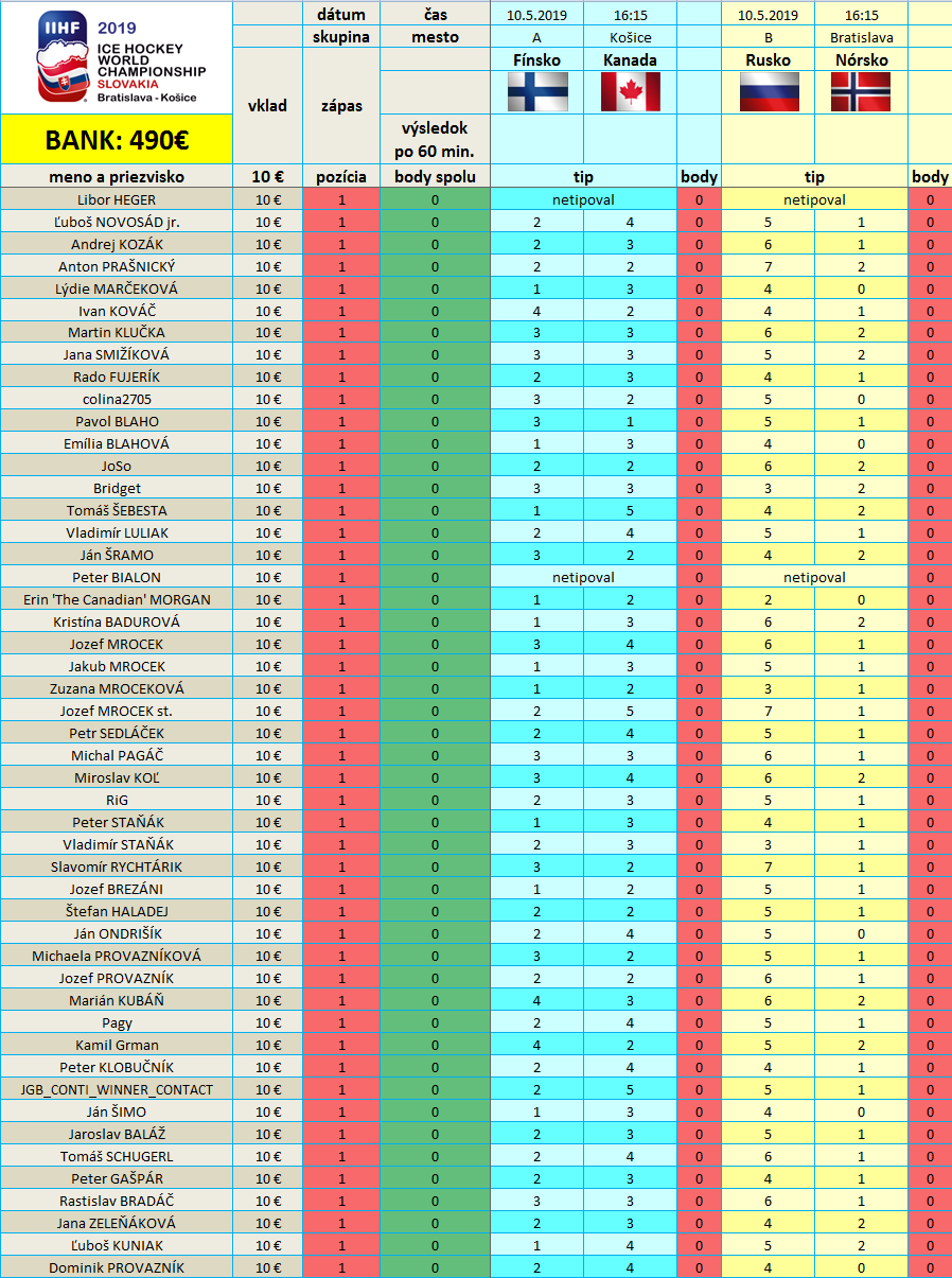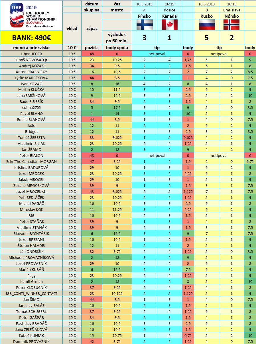 10.5.2019 - tipy na zápasy Fínsko - Kanada, Rusko - Nórsko