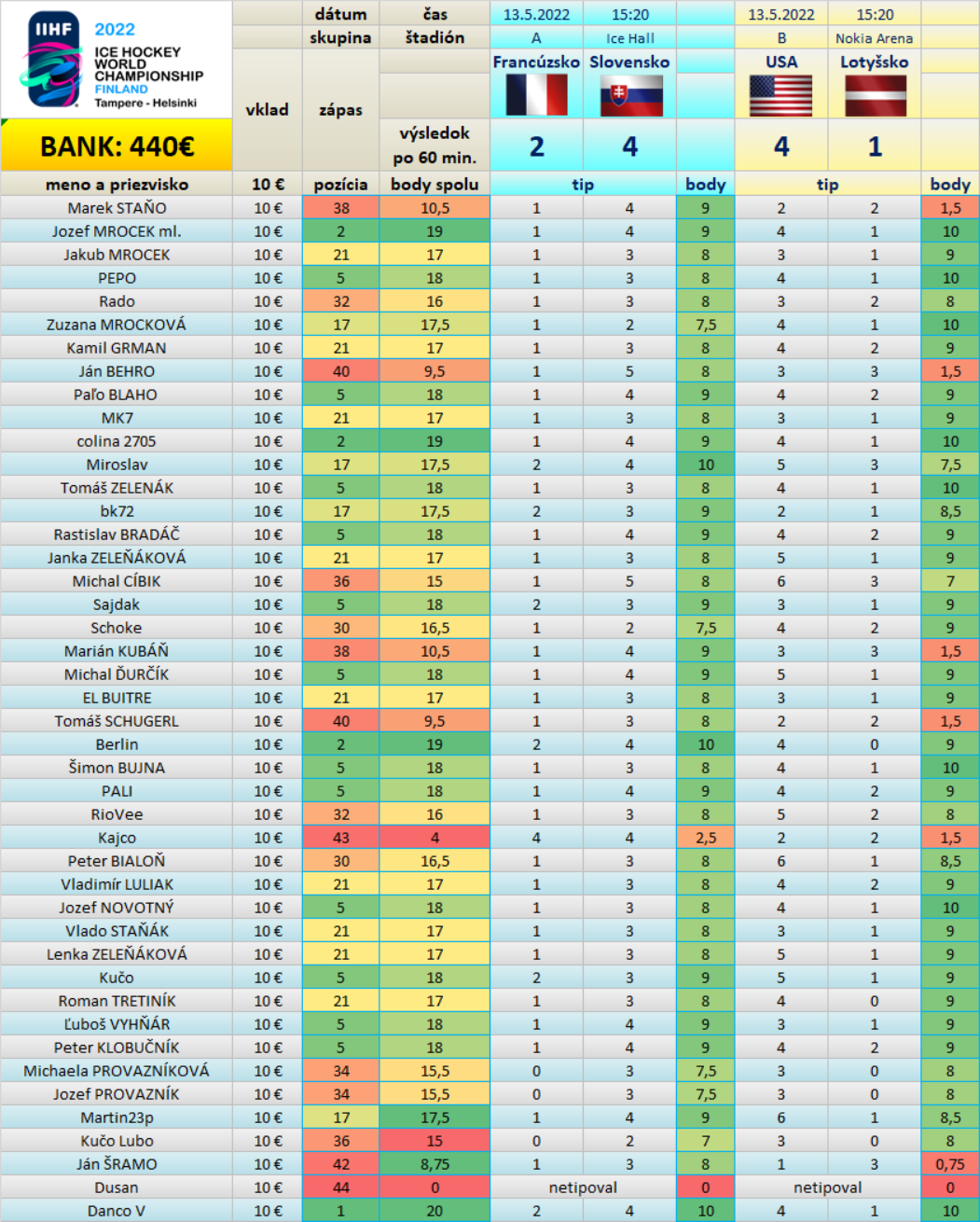 FRANCE vs. SLOVAKIA 2 : 4 ( 0 : 1, 2 : 2, 0 : 1 )