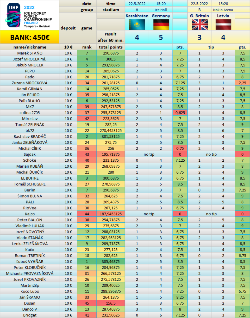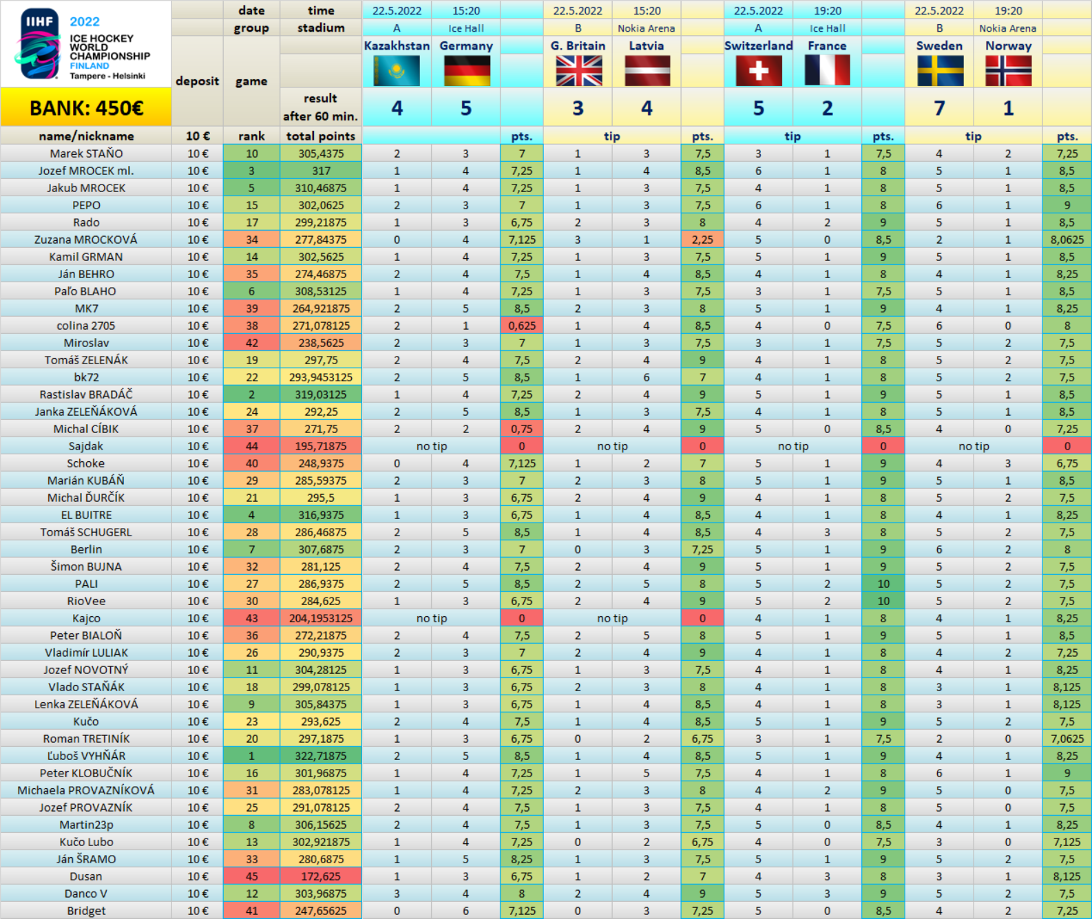 Tipovačka after played 46 of 64 games: