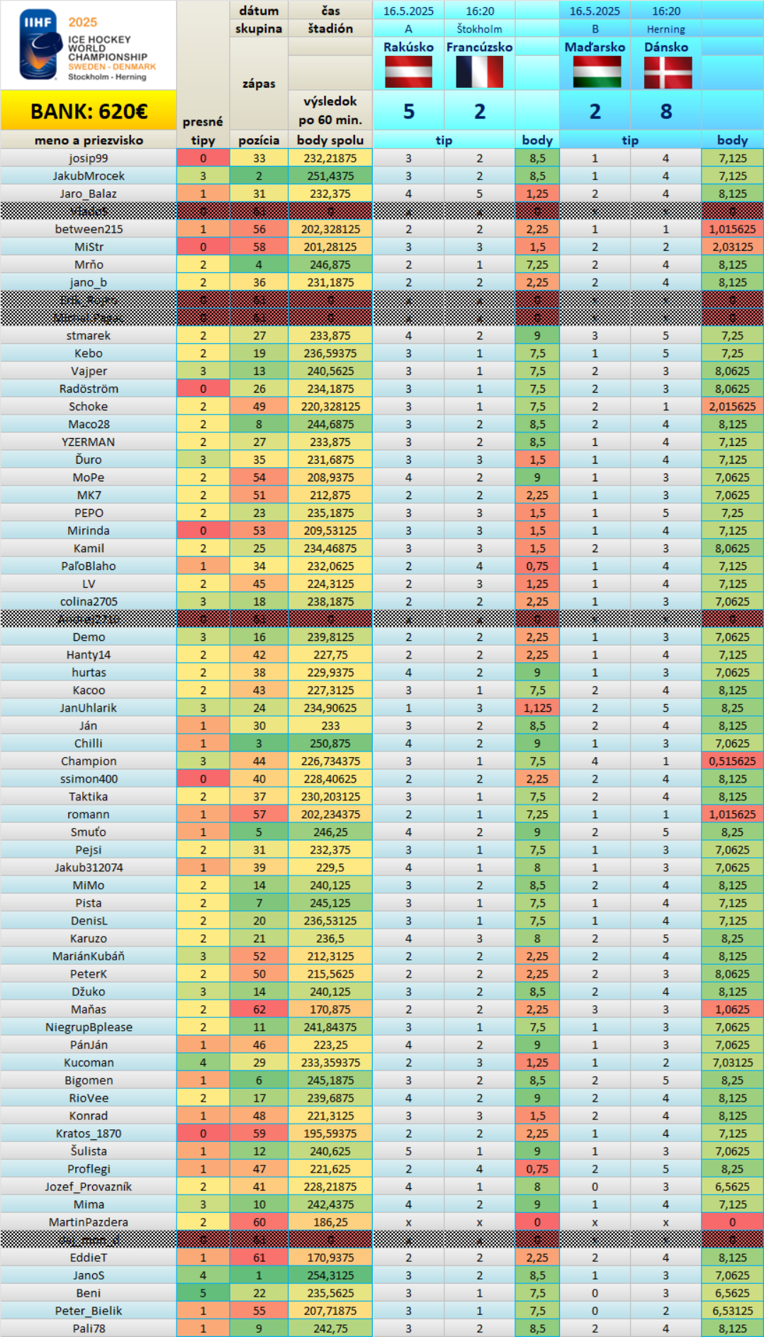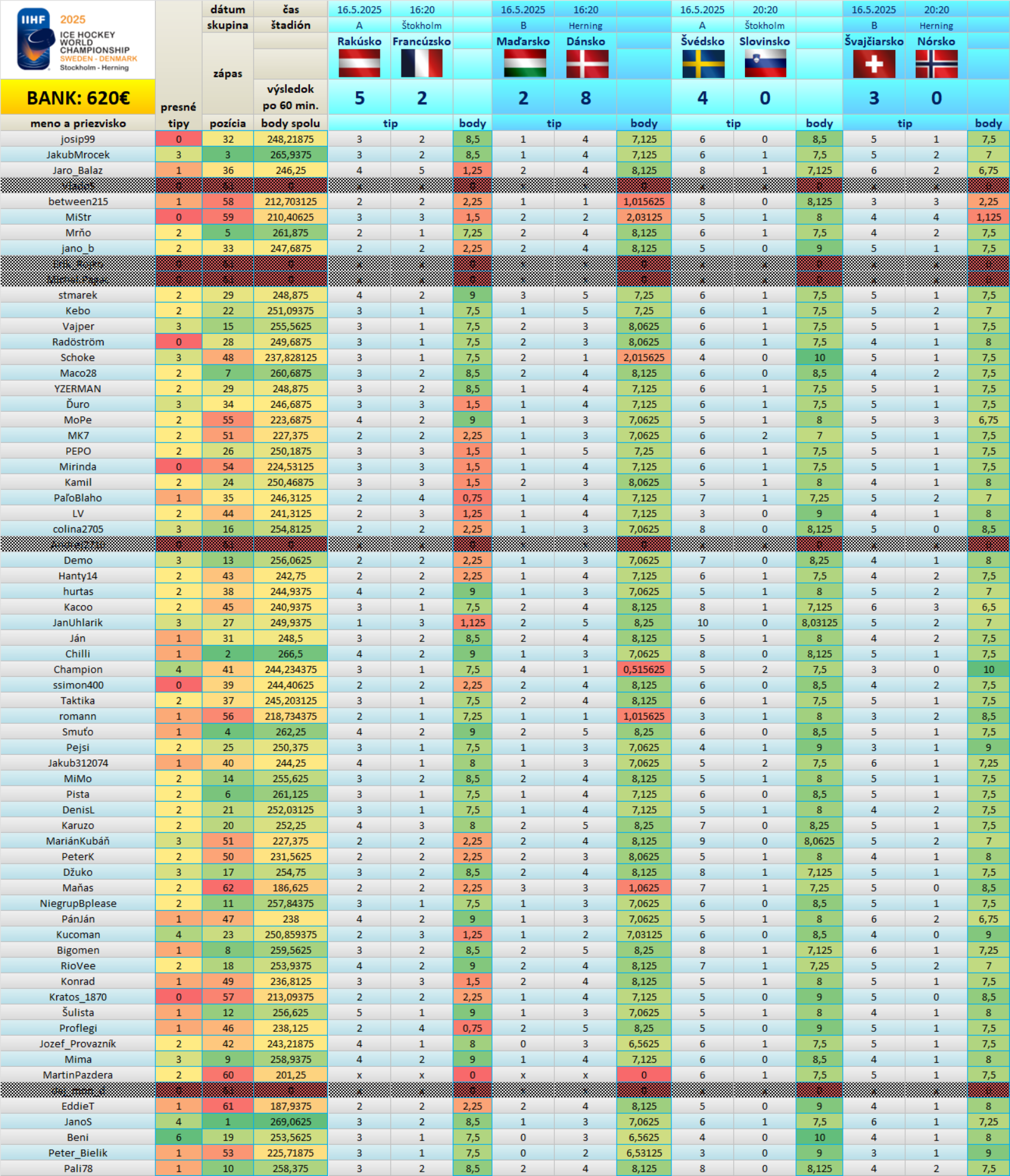 Tabuľka Tipovačky po 36/64 zápasoch: