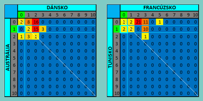 Tabuľka Tipovačky po zápasoch AUSTRÁLIA - DÁNSKO 1 : 0 a TUNISKO - FRANCÚZSKO 1 : 0