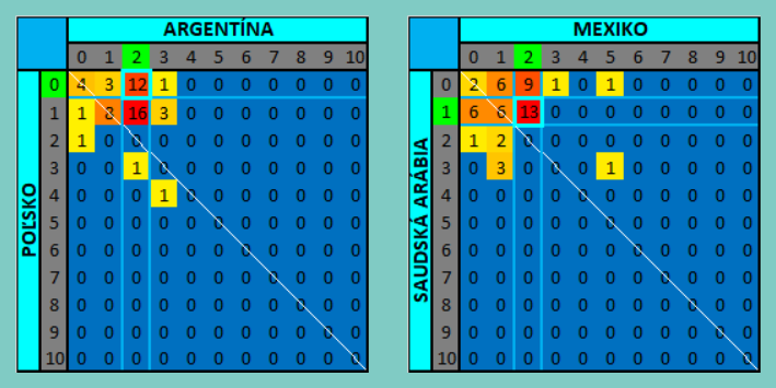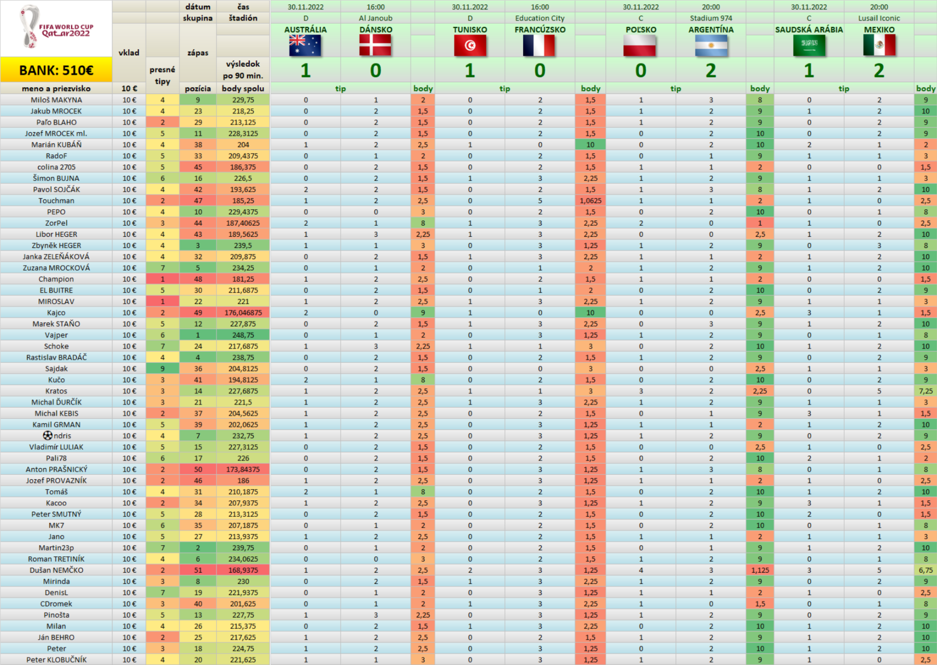 Tabuľka Tipovačky po zápasoch POĽSKO - ARGENTÍNA 0 : 2 a SAUDSKÁ ARÁBIA - MEXIKO 1 : 2