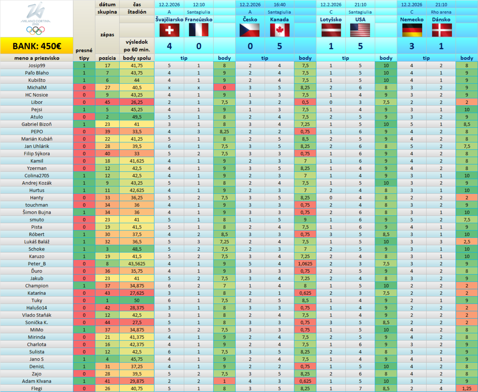 Tabuľka Tipovačky po 6/30 zápasoch: