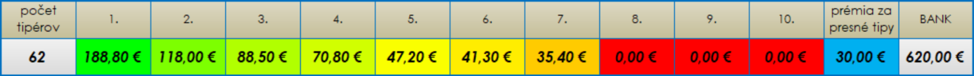 Tabuľka Tipovačky po 62/64 zápasoch: